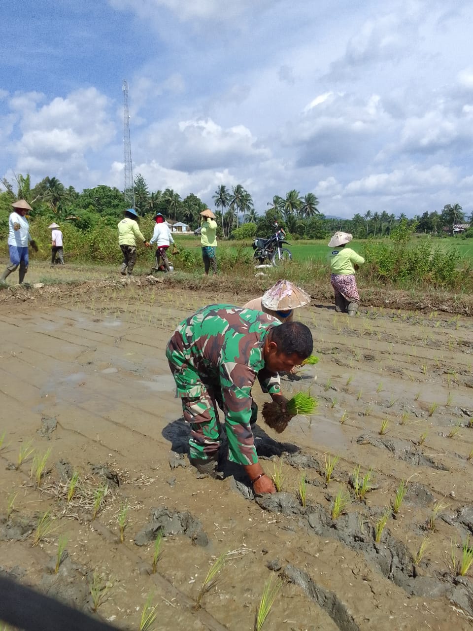 “Kegiatan tanam padi yang dikerjakan oleh Babinsa merupakan wujud kemanunggalan TNI bersama rakyat,” katanya.
