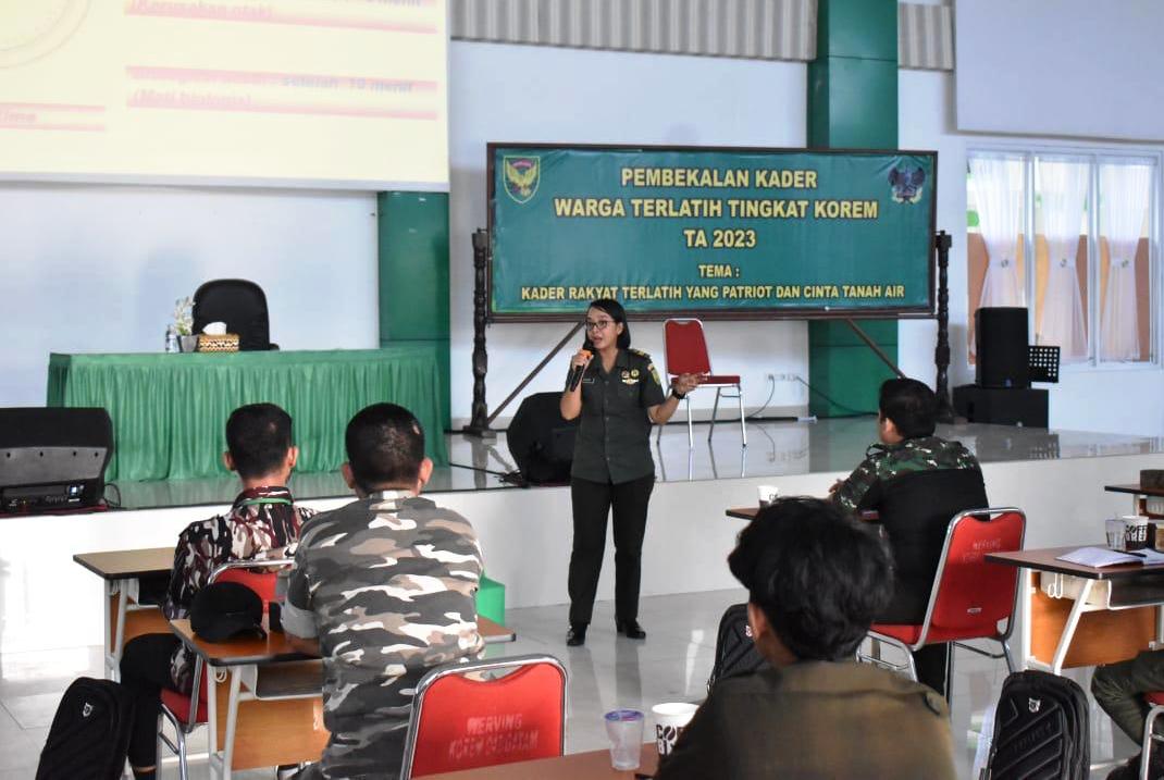 Lampung – Selaku Komandan Kewilayahan Tingkat Provinsi Lampung Korem 043/Gatam dalam rangka membangun, memelihara, dan memantapkan Kemanunggalan TNI-Rakyat, rabu (11/10) Korem 043/Gatam Menyelenggarakan Kegiatan Pembekalan Kader Warga Terlatih Tingkat Korem TA. 2023, bertempat di Aula Sudirman Makorem 043/Gatam Jl.Teuku Umar Penengahan Bandar Lampung.