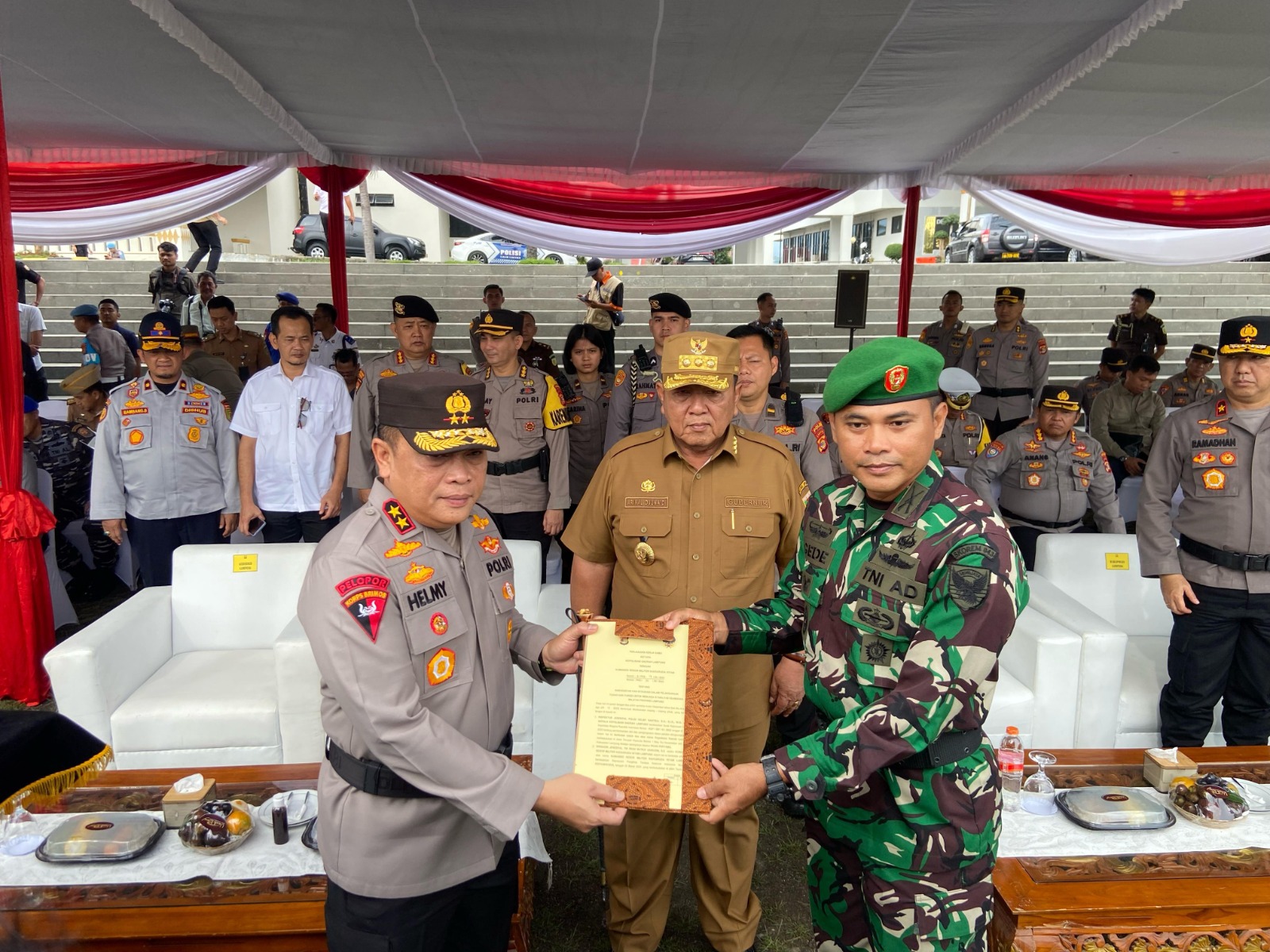 Lampung – Dalam rangka mensukseskan Pemilu 2024 dan Siaga Bencana di Provinsi Lampung, Korem 043/Gatam beserta Jajaran mengikuti apel bersama TNI–Polri, dengan pimpinan apel Gubernur Lampung Ir. H. Arinal Djunaidi dan Komandan Apel Dandim 0410/KBL Letkol Arh Tan Kurniawan, S.A.P., M.I.Pol., bertempat di lapangan Korpri komplek perkantoran Gubernur Provinsi Lampung Teluk Betung Bandar Lampung. Selasa (6/2/2024)