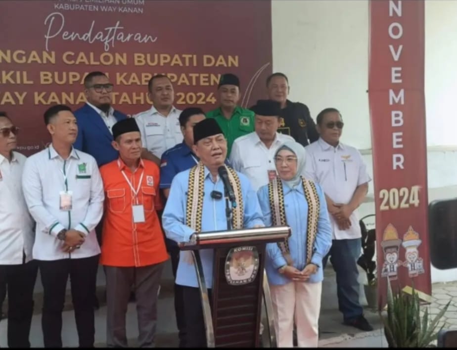 WayKanan-Seusai melaksanakan doa dan bersholawat bersama pasangan bakal calon Bupati dan Wakil Bupati Kabupaten Way Kanan Drs, H. Ali Rahman., S.T., M.T. dan Ayu Asalasiah., S.Ked, mendaftar ke Komisi Pemilihan Umum (KPU) Kabupaten Way Kanan, Rabu (28/8).