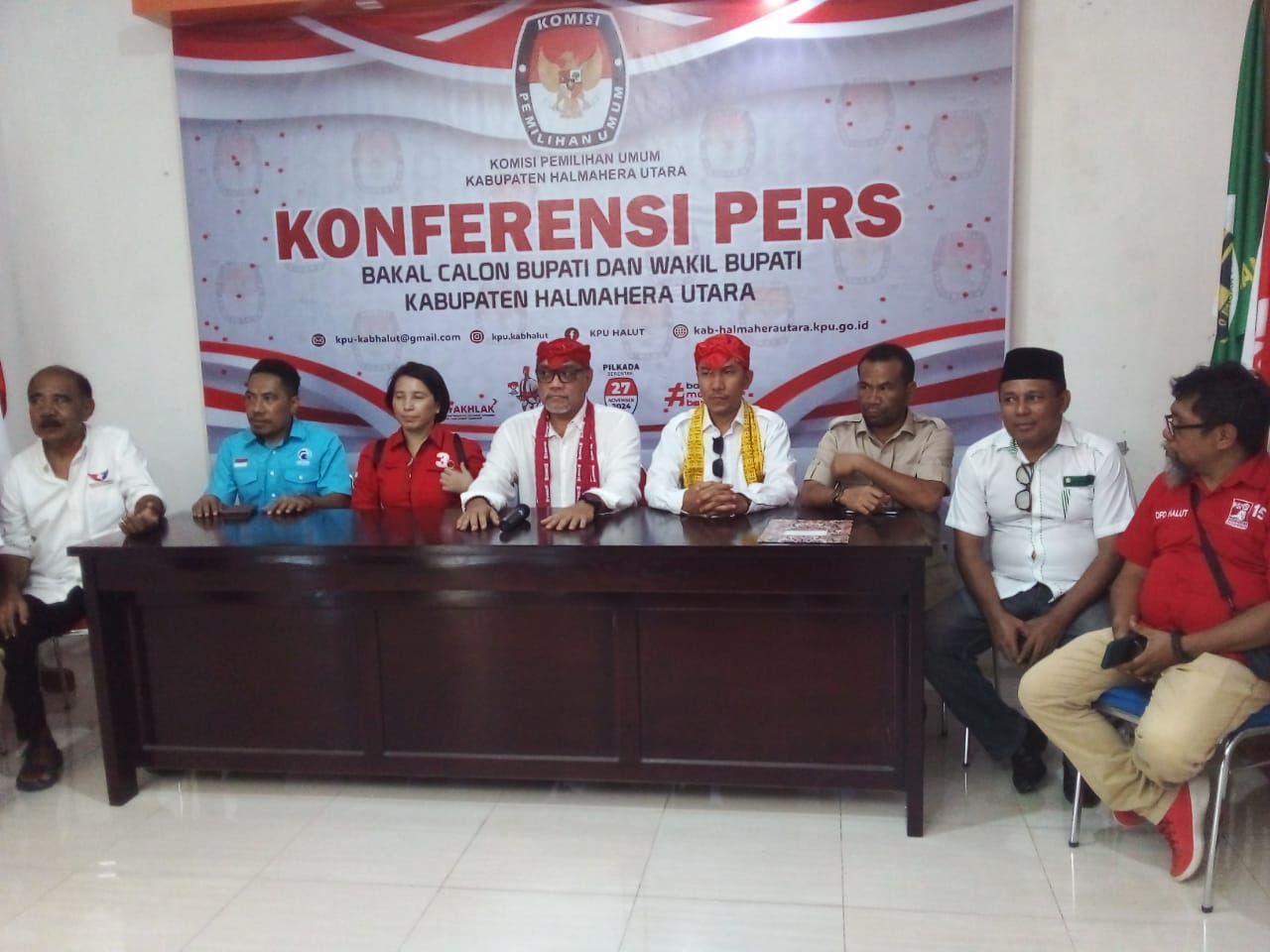 Kedatangan bakal pasangan calon itu disambut langsung oleh Abdul Djalil selaku Ketua KPU Halmahera Utara, Anggota KPU, pihak Bawaslu dan jajaranya.