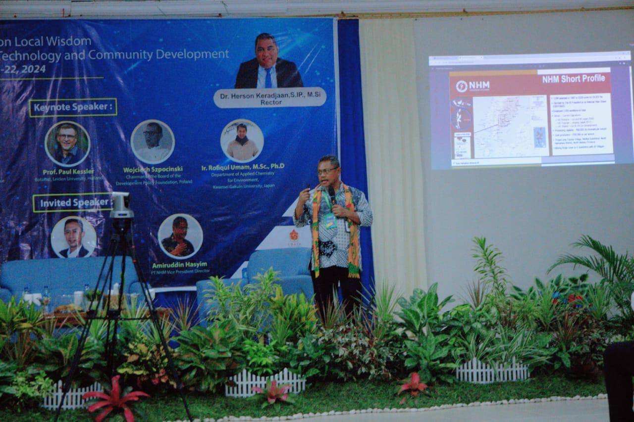 Maluku Utara – Mewakili Presiden Direktur PT Nusa Halmahera Minerals (PTNHM) Haji Romo Nitiyudo Wachjo biasa disapa Haji Robert, Amiruddin Hasyim selaku Wakil Presiden Direktur PTNHM bersama jajarannya menghadiri undangan seminar international conference on Lokal Wisdom for the Sustainability of Science, Technology and Community Development yang berlangsung di Aula Kampus Uniera Tobelo Kabupaten Halmahera Utara, Maluku Utara, pada Rabu (21/8) beberapa hari kemarin itu.