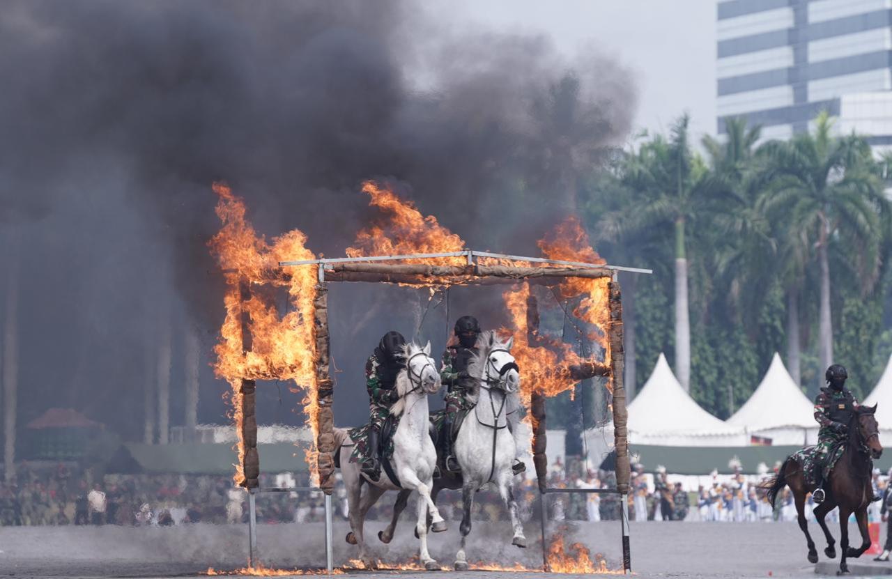 Kemeriahan semakin meningkat dengan penampilan Jupiter Aerobatic Team, yang menyuguhkan aksi akrobatik udara yang memukau. Acara ditutup dengan defile pasukan dan Alutsista TNI, menunjukkan kekuatan dan kesiapan TNI dalam menjaga kedaulatan NKRI.