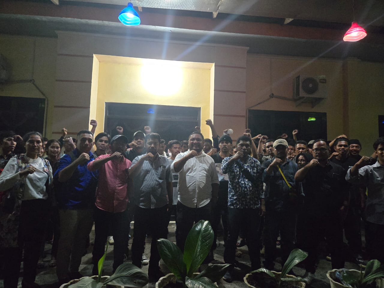 Malut- Massa pendukung Williams Jesajas melakukan aksi walk out atau keluar dari ruang Konferensi Cabang (Konfercab) Gerakan Angkatan Muda Kristen Indonesia (GAMKI) Kabupaten Halmahera Utara (Halut), Maluku Utara yang berlangsung di Greenland Tobelo, pada Rabu (21/5).
