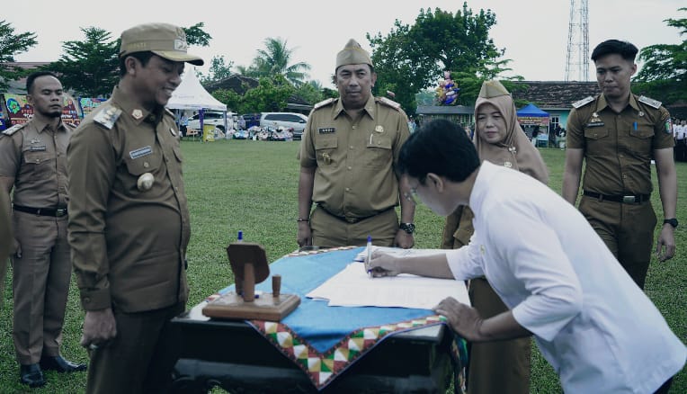 PRINGSEWU – Sebanyak 1.233 Aparatur Sipil Negara (ASN) Pegawai Pemerintah dengan Perjanjian Kerja (PPPK) di lingkungan Pemerintah Kabupaten Pringsewu, diambil sumpah oleh Bupati Pringsewu Riyanto Pamungkas di Lapangan Kecamatan Adiluwih, Senin (30/6/2025) pagi.