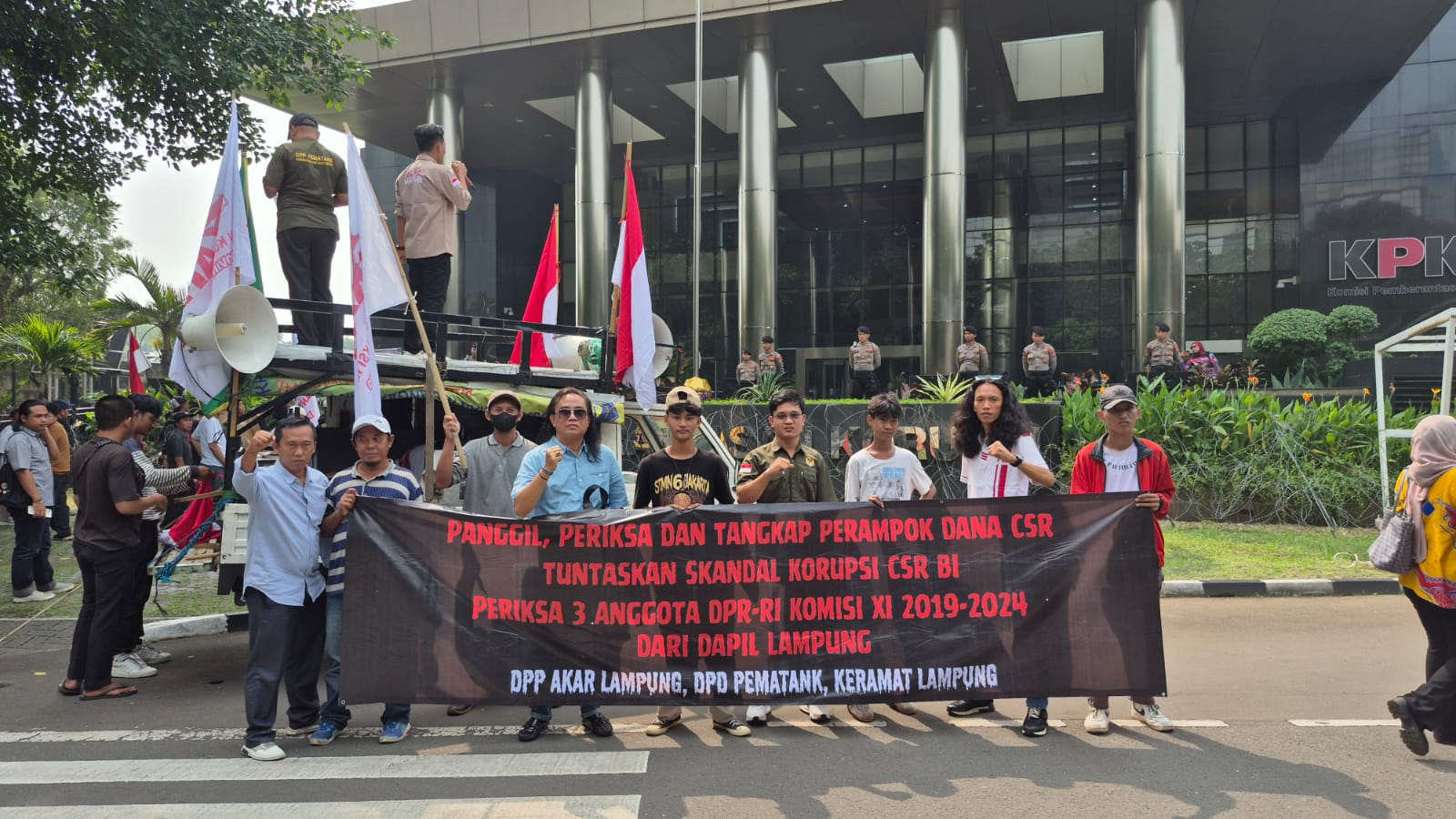 Lampung-Aliansi tiga LSM Lampung yakni Aliansi Komando Aksi Rakyat (AKAR), Koalisi Rakyat Madani (KERAMAT), dan Pergerakan Masyarakat Analisis Kebijakan (PEMATANK) mendesak Komisi Pemberantasan Korupsi (KPK) yang menetapkan seluruh anggota DPR RI Komisi XI periode 2019–2024 termasuk 3 orang Perwakilan Lampung sebagai tersangka dalam kasus dugaan korupsi dana Corporate Social Responsibility (CSR) Bank Indonesia.