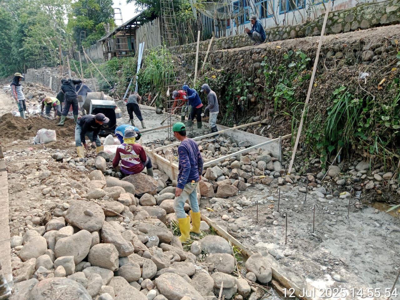 “Material pasir dan batu diambil langsung dari lokasi, tanpa pemecahan. Batu bulat disusun seadanya, pembesian tidak sesuai gambar kerja, dan pekerjaan molor tiga bulan dari batas kontrak. Bahkan talud sepanjang lima meter sempat ambrol saat proyek belum selesai,” ungkap Abzari Zahroni ditemui di kantornya, Selasa,(4/11/2025).