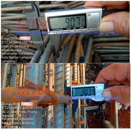 PEKERJAAN PASANGAN KOLOM (K2), Indikasi dugaan pelanggaran objeknya adalah menggunakan tulangan besi banci polos 11,20 mm / 10,85 mm / 10,23 mm / 11,14 mm / 11,32 mm / tidak sesuai spesifikasi yang seharusnya menggunakan tulangan besi D 12 mm ulir