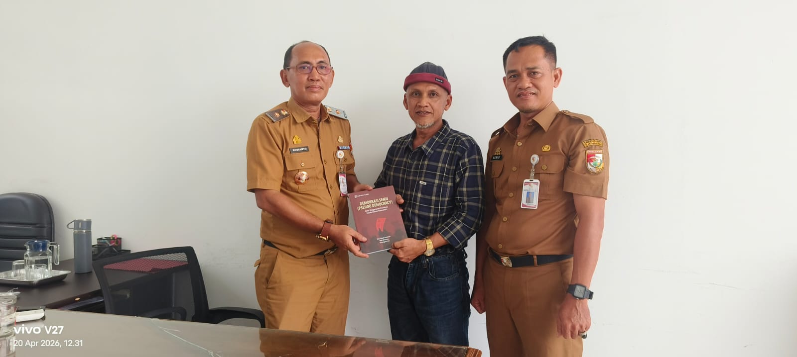 Penyerahan Buku PSEUDO DEMOCRACY tersebut diterima langsung oleh Kepala dinas Perpustakaan dan kearsipan Rodianto, S.Pd., M.Pd, didampingi Sekretaris Restu,.ST., MT. Pada senin (20/4/2026) sekitar pukul 11.52 Wib.