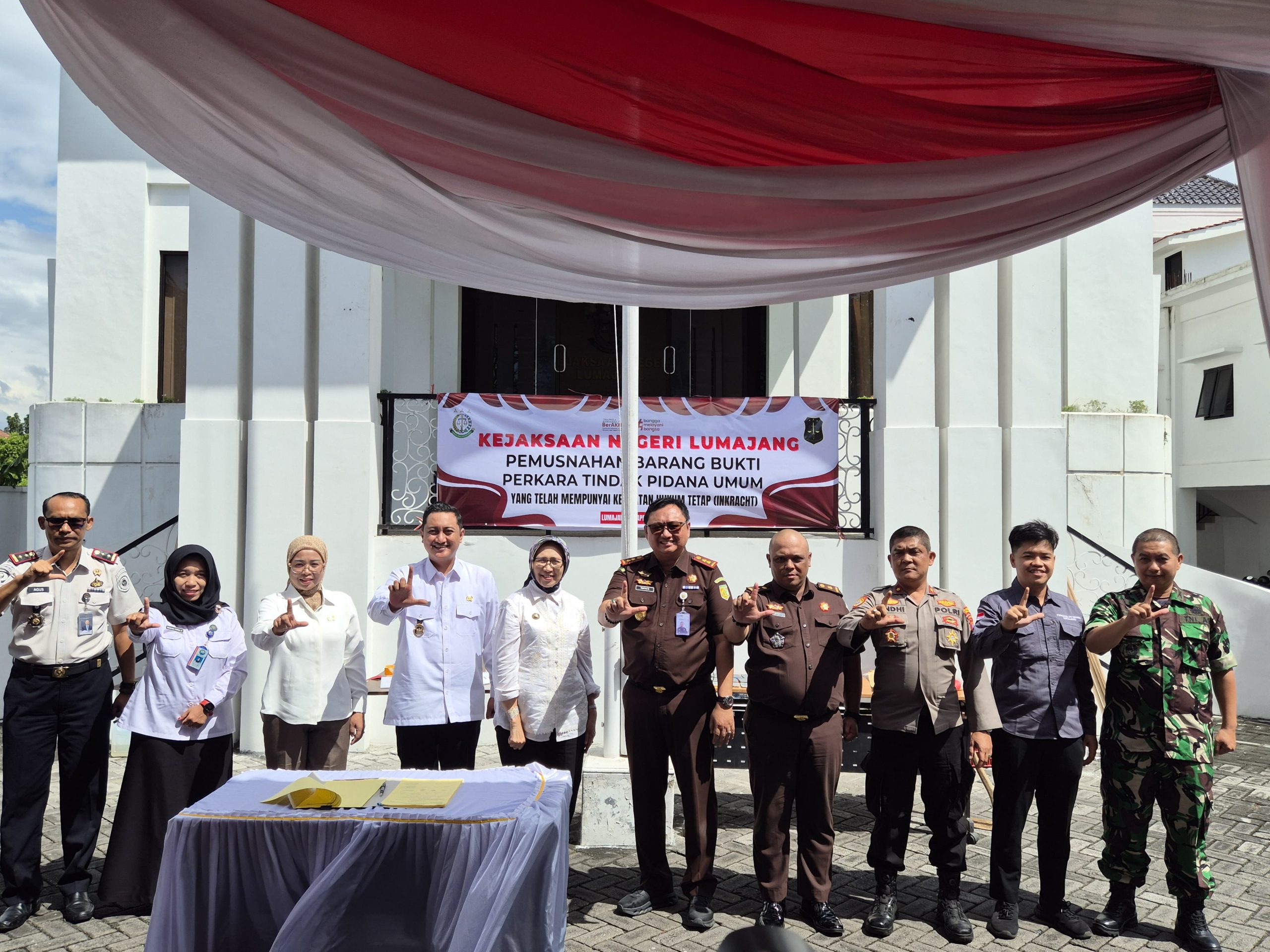 LUMAJANG, KELUMAJANG.COM – Kejaksaan Negeri Lumajang melaksanakan pemusnahan barang bukti dari 108 perkara tindak pidana umum yang telah berkekuatan hukum tetap (inkracht van gewijsde), Rabu (22/4/2026). Kegiatan tersebut digelar di halaman depan Kantor Kejari Lumajang.
